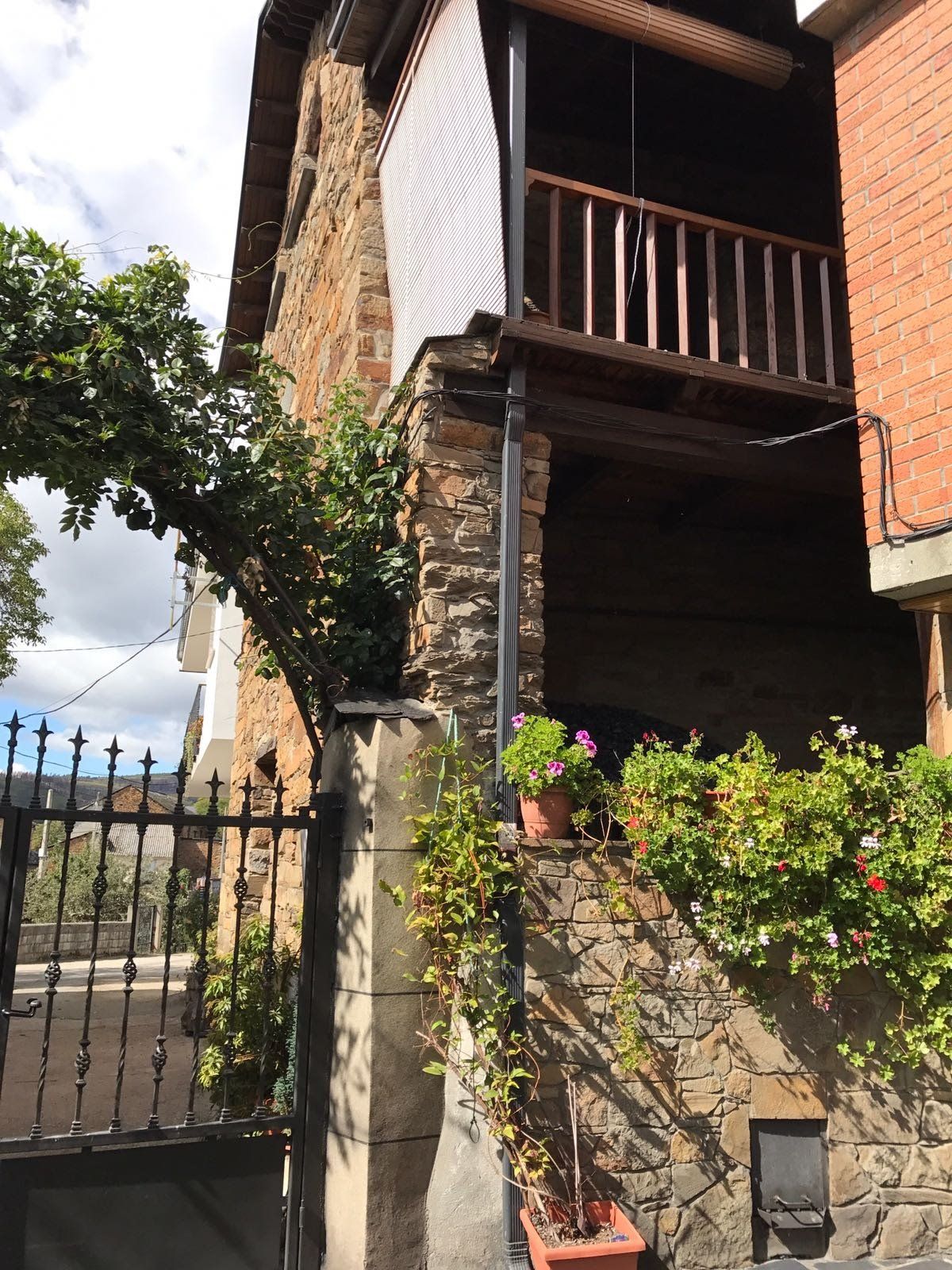 El acceso a la vivienda se realiza a través de un patio privado con jardín en el que podemos disfrutar no sólo de los paisajes que desde él se ven sino del pequeño paraíso que allí han creado los propietarios, este rincón dispone no sólo de una mesa con bancos en el que descansar y relajarse sino de una barbacoa con horno de barro en el que poder degustar los deliciosos productos de la zona.